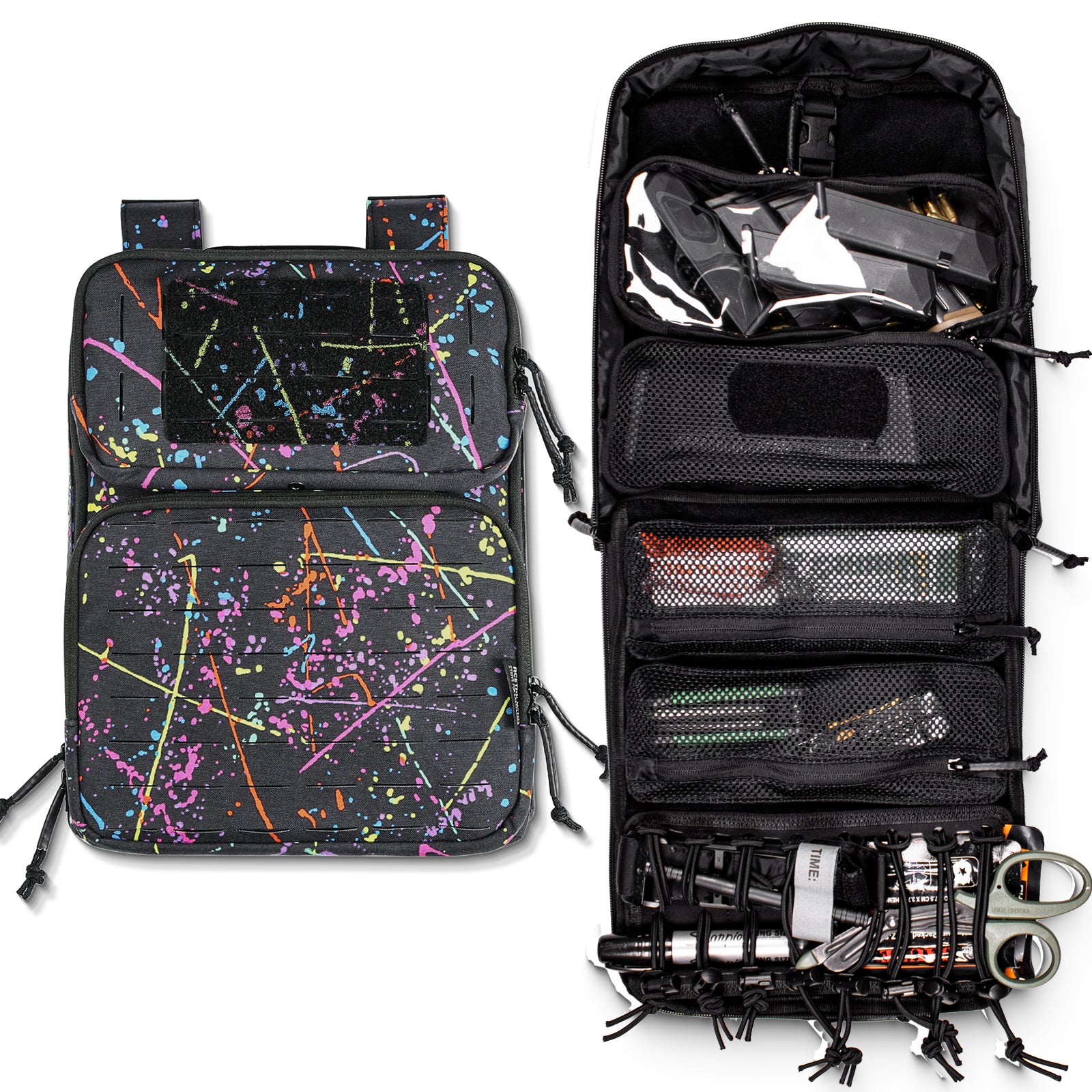 - Bottom Compartment: 8’’ (H) x 10’’ (W) x 1’’ (D), with internal loop Velcro field for additional attachments.