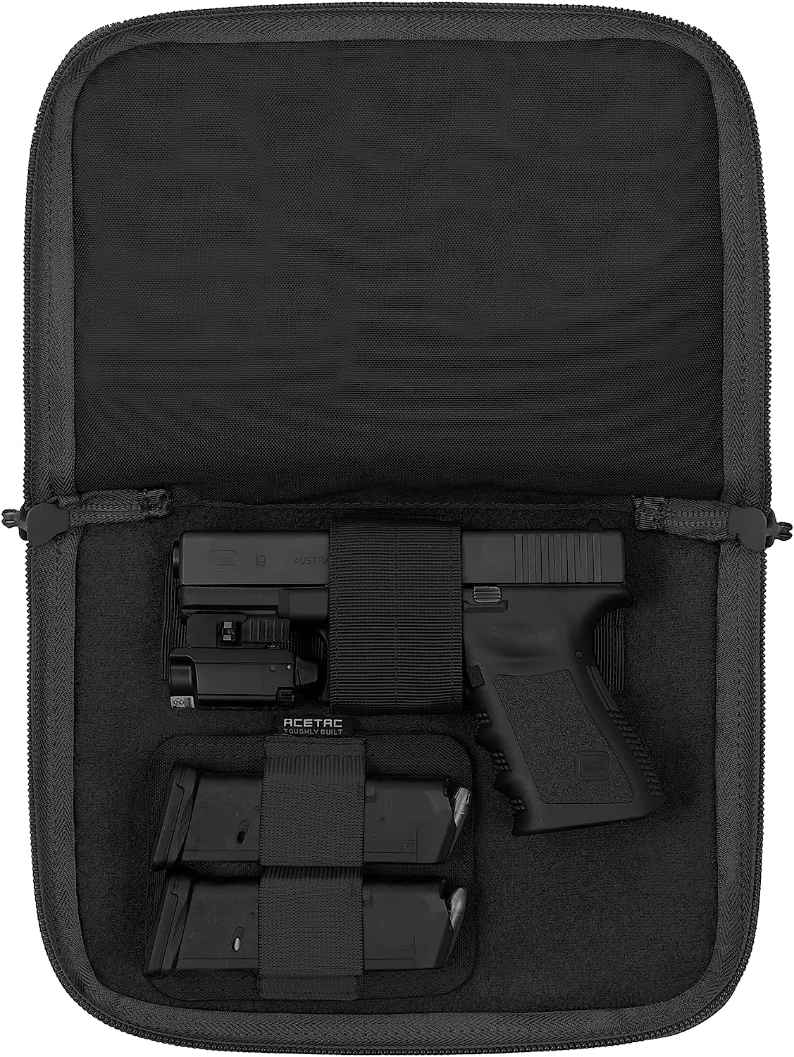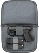 MOBILITY SOFT Pistol Case is engineered for optimal security, convenience, and comfort. Its soft, double-padded design accommodates full-sized and most 1911 handguns, while a full hook-and-loop panel, detachable CCW handgun holster and double pistol mag holder offer additional protection during transport. Reinforced stitching and a lockable zipper ensure secure storage, while a detachable reflective name tag allows for easy identification. With this case, you can rest assured that your firearms are both safe and easily accessible.