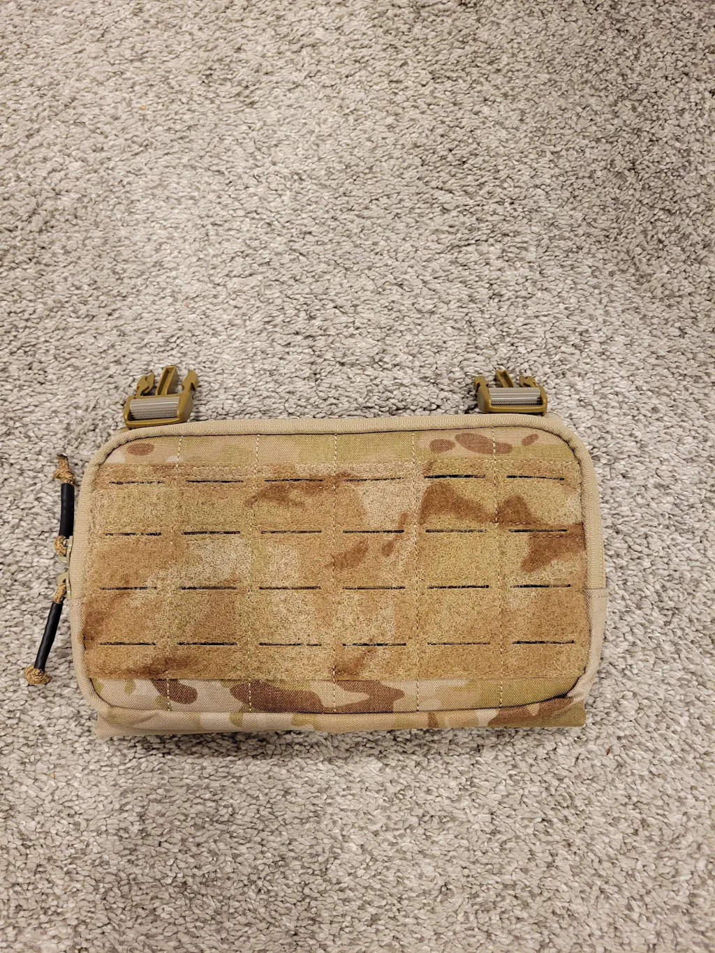 The SKELETON Admin Placard is adaptable for use as a chest rig system. It is equipped with side laser-cut slots that are compatible with 1-inch buckles, enabling the attachment of both shoulder and waist straps for a complete rig setup. Compatible with our Multi-Mission Strap.