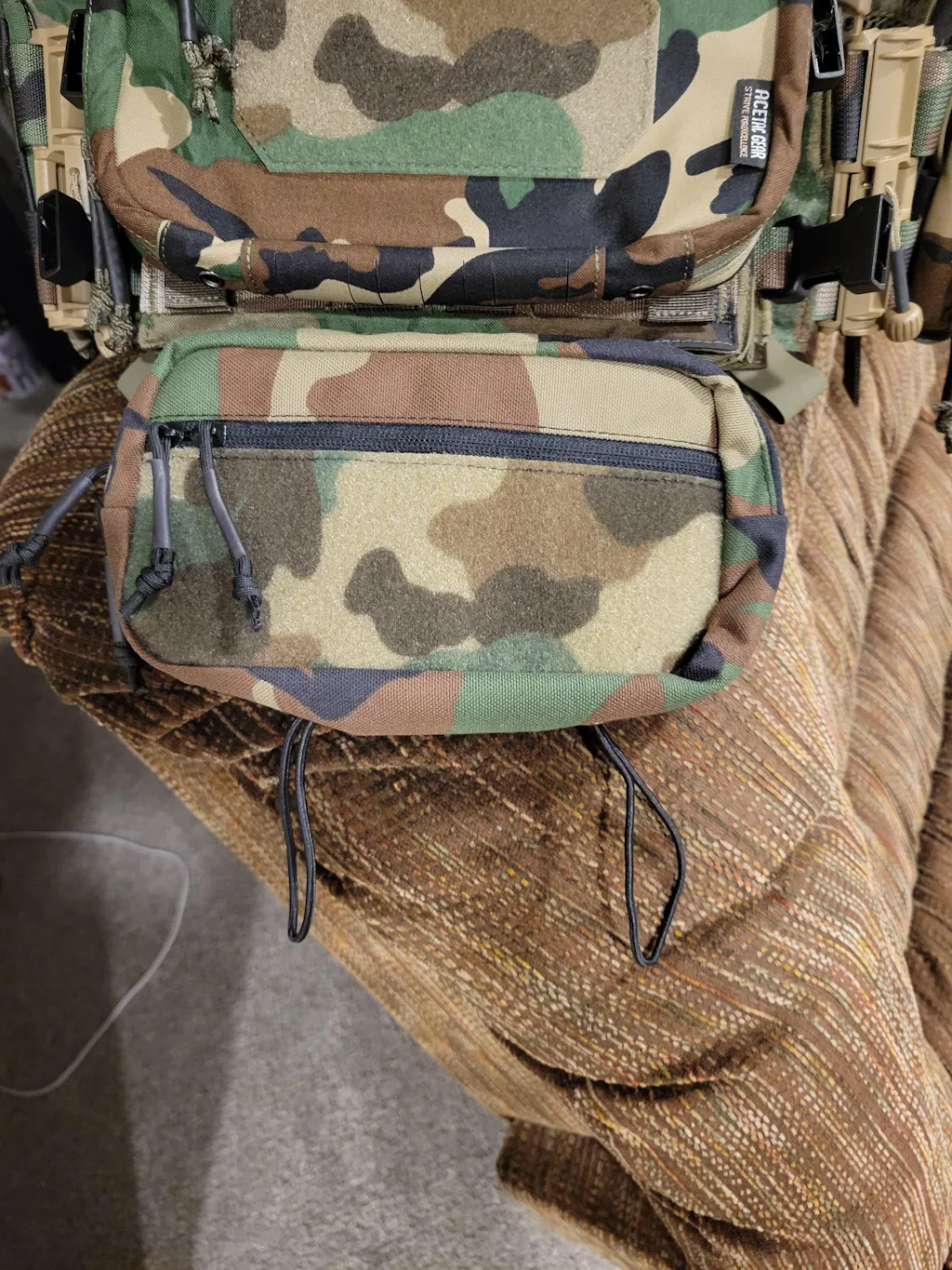 THE SUB-ABDOMINAL DROP POUCH is designed to provide additional storage to your chest rig and plate carrier setup. The pouch features two zipper pockets, a full hook and loop panel, and elastic loops at the bottom. The small zipper pocket is perfect for easy access to small gadgets. The main pocket features two elastic loop pouch inserts and can be configured to your own needs. The bottom elastic loops can be adjusted to hold various sizes of tools: tourniquet, flashlight, etc.