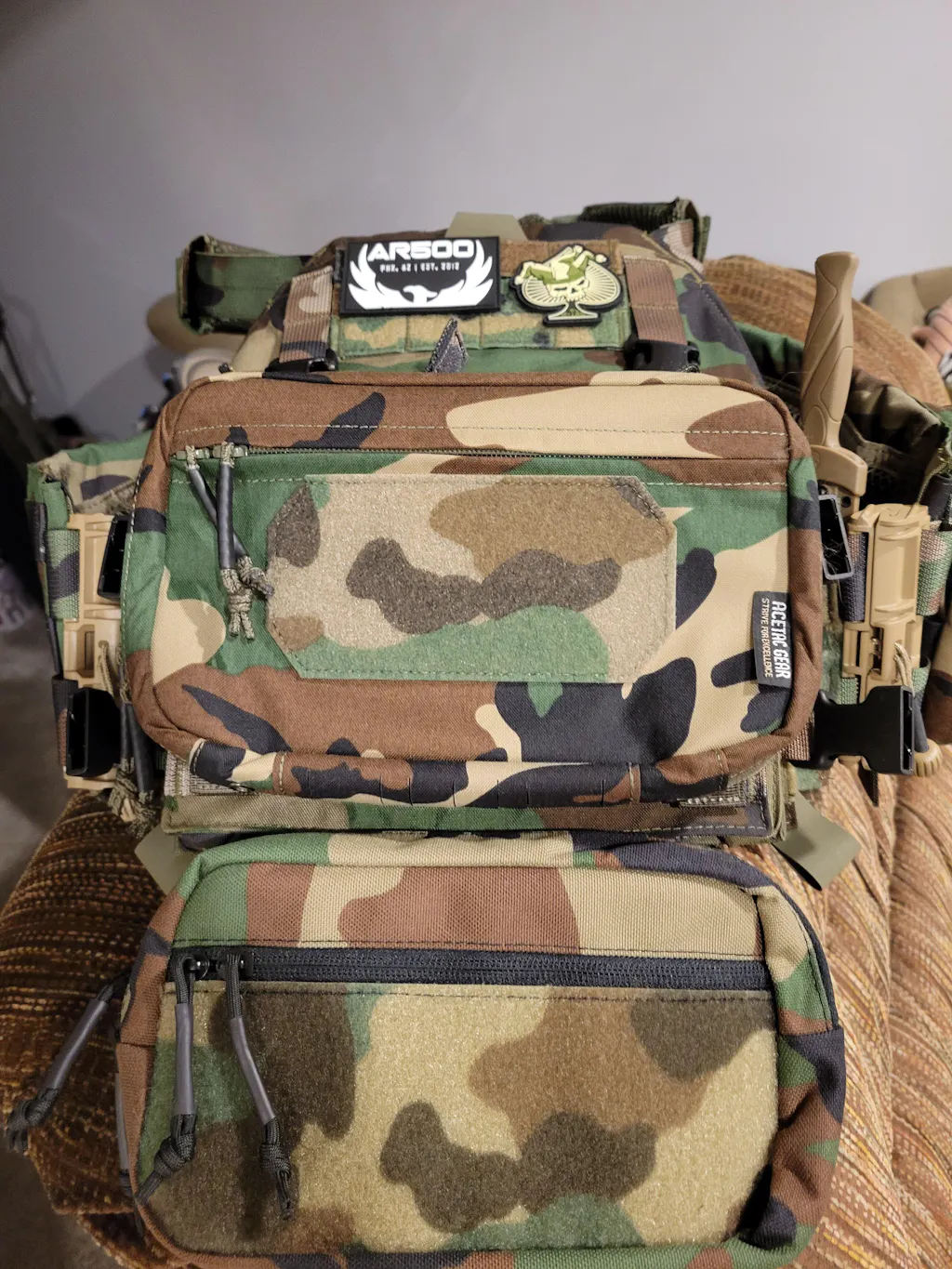 - Front hook and loop panel for patches and chem light holders